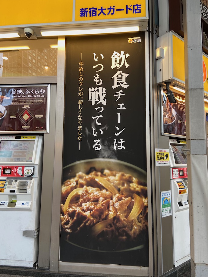 その商店街の入り口、大ガードのそばに一軒のどんぶりや?がある。その店頭でぶら下がっているバナーを見て、おもわずたちどまってしまった。ただただ感動した。久しぶりに「広告コピー」で涙を流しそうになった。このコピーを書いたライターさんとは是非ご一緒に仕事をしてみたい。