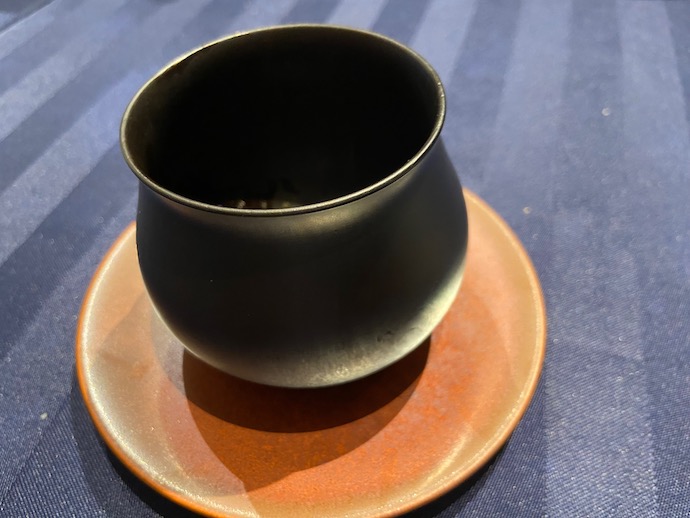 メインアントレは、ジビエ(鹿肉)のローストだった。残念ながら高知さんの鹿は手に入らずということで、今回は滋賀県のもの。ジビエも普通に食べられるようになったのは、どうやらSDGsを売り物にした地域生産物として、全国各地で出回るようになったせいらしい。