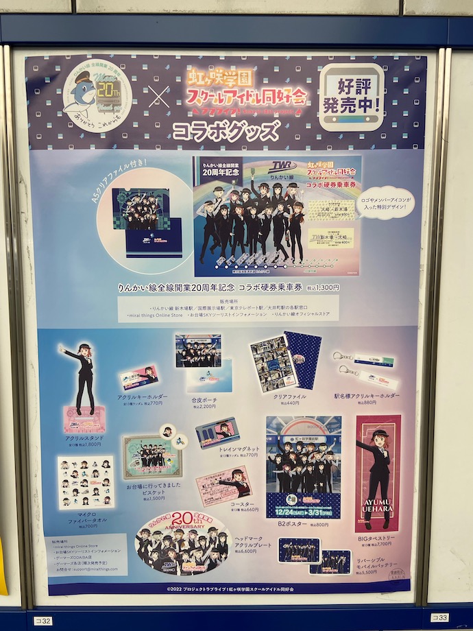 当然、コラボグッズのポスターもあった。これは重要な資金源なので、絶対に掲示が必要な案件なのだが、そもそもグッズはどこで買えるのだろうか。駅構内に販売所が見当たらなかったのだが。ひょっとすると改札を出たところにあるコンビニ店で、特設コーナーがあるのかもしれないと気がついたのは、家に戻ってきてからだった。
