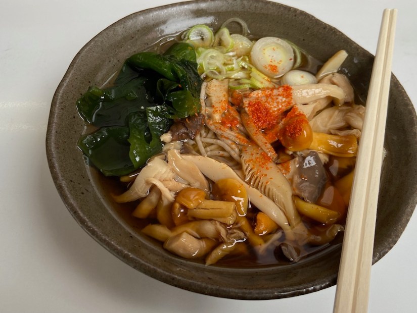 注文の品は、ほぼ待ち時間なしに登場してきた。(駅そばなので当たり前か)そして、味はジャパニーズ・ファストフードである立ち食いそばの伝統をしっかり守った逸品だった。大量にのっているきのこは、何種類かのキノコがミックスされていて、薄い塩味がついている。ネギも多めだが、立ち食いそばの名脇役であるワカメもたっぷり入っていた。