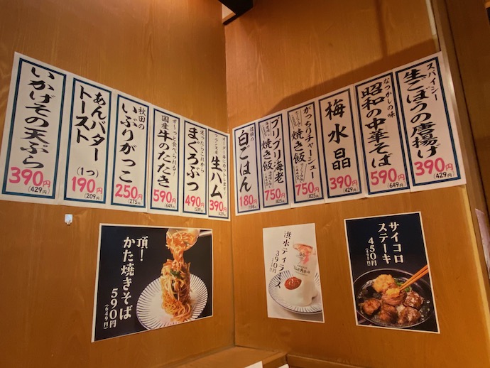 昭和の時代には、駅前にある大衆食堂の壁全面にメニューというか品書きがびっしりと貼ってあった。ファミレスとファストフードの時代になり、手書きの文字が敬遠され、メニューは手元で見る写真入りの冊子に変わった。