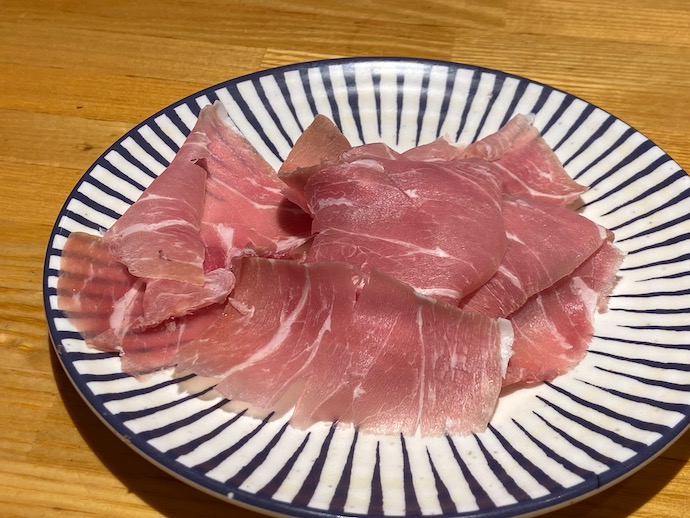 昭和世代にとっては、「超」がつくほど高級品イメージのあった生ハムも、今ではコンビニに並んでいる平凡な通常品だ。ただ、それがさらに盛り付けて出されると、何やら心躍るのは昭和世代の残滓みたいなものだろう。平成生まれにとっては、これよりもタコさんウインナー(赤いやつ)の方がよほどビジュアル的には喜ばれそうだ。
