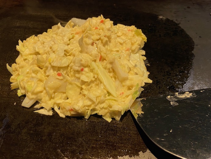 しばらく行っていない間に、店内はおどろくほど情報武装化されていた。お好み焼きの焼き方もタブレットから動画で見ることができる。すごい進化だ。思わず、あのおっちゃんの会社が………と言いたくなる。この3年間の非接触営業推奨に対応したのだろうか。