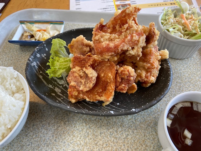 ちなみにおすすめは、自家製麺をしているので麺類だそうだ。定食系ではザンギ定食がよく出るということだったので、二人ともザンギ定食にした。しかし、それが間違いだった。