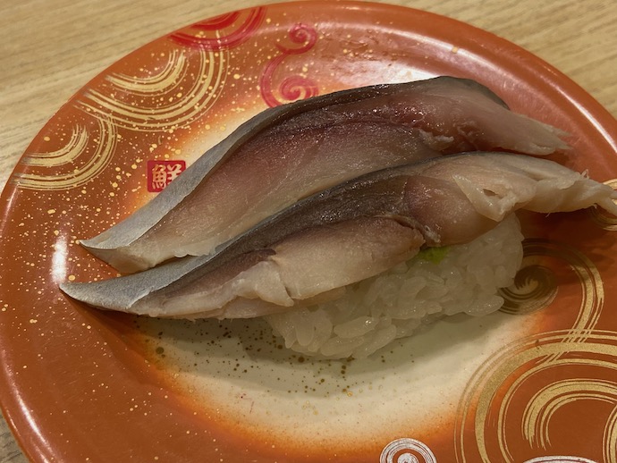 続いて我が絶対定番であるしめ鯖を注文する。出てきた品物を見ると鯖がちょっと小さくなった気がするが、その分身が厚みをましたようだ。この店のしめ鯖は自家製らしく(北海道のローカルすしチェーンは大体が自家製しめ鯖のようだ)、大手全国チェーンで提供される「しっかり工場で作りました」的なものとは歴然と違う。
