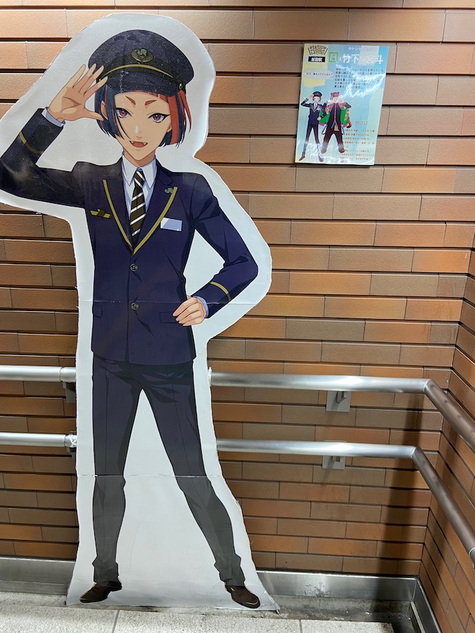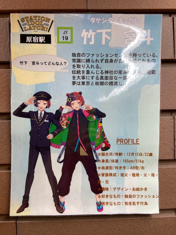 帰り際にJR原宿駅竹下通り口から改札を抜けて気がついたのが、何やら怪しげな立て看板というか、お姉さん?の描かれた看板だ。最近は観光地に行くとこういうキャラ看板があちこちに立っている。どれどれと見に行ってみたら、どうやら「鉄キャラ」で、おまけにどうやらお兄さんらしい。