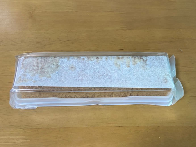 箱から出してみると、上部は紙で蓋をされている。これは珍しいなと思うが、乾燥防止なのだろうか。この紙をゆっくりと剥がしてみると、棒状の姿が見えてくる。なんと、一口サイズ?に切り分けられていた。親切仕様だ。