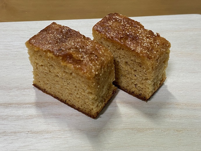 カステラのような滑らかな記事ではない。どちらかというともっさりとした、口の中の水分を全部持っていくタイプの生地だ。この手の水分奪取系菓子が好きな人は多いようだが、個人的にはそれが不思議だなと思っている。パンの系統でも、蒸しパンとかスコーンなどは典型的な水分奪取系食品で、ちょっと苦手な食べ物になっている。