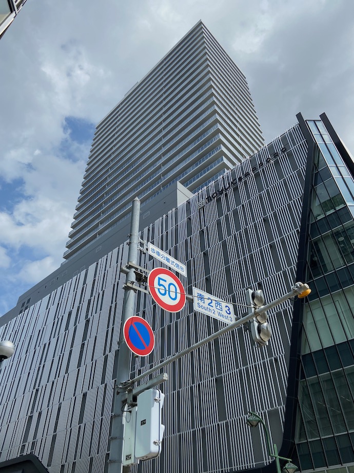 狸小路の駅前通りに面した、いわゆるメインストリート沿いの高層ビルが竣工しているようで、開業は7月中旬。ビル内に水族館ができるというから、楽しみにしていたが、まだ今は開業前なのでビル入り口を見学して終わりだ。