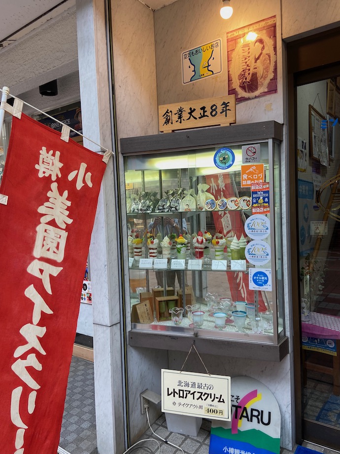 何度も小樽には行っているのに、全く知らなかったレトロアイスクリームの店を発見した。アーケード街の一角、それも2階にある店のようだ。これまで一度も視界に入っていなかった。レトロアイスクリームの情報すら知らなかった。これは、ぜひ次回の目的地にしなければ。