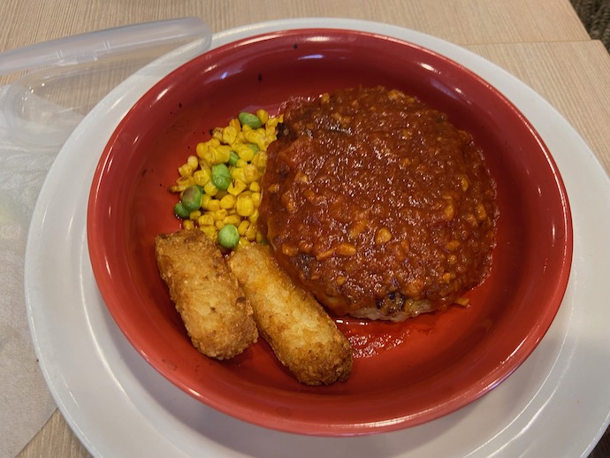 しかし、ハンバーグを鉄板ではなく、皿に盛って出すとは、何か勘違いをしているようだ。明らかにチープに見える。