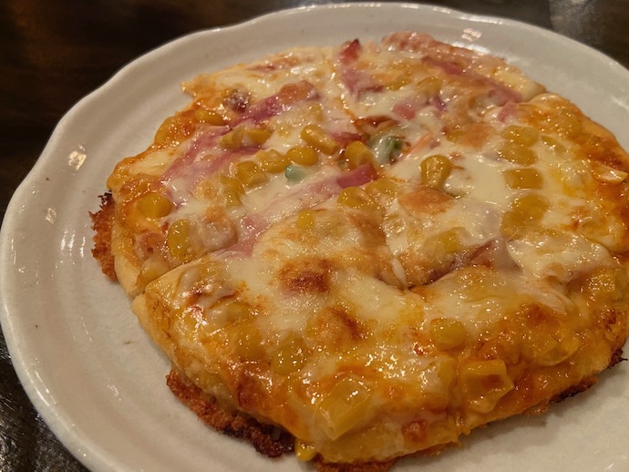 居酒屋のピザは美味い。主食の食べ物としての旨さというより、濃厚なチーズが生み出す、脂とアミノ酸たっぷりの、人類種にとってDNAに直接響き渡る旨さだからだろう。どこの居酒屋でも小ぶりなサイズで出てくるのは、やはり珍味、酒の肴としての立ち位置を守っているからだ。