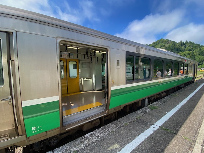 ワンマン電車で長時間走る只見線には、当然ながら車両にトイレがついている。発車までの時間は、ずっとトイレが使用中だった。会津若松から小出までは所要時間が4時間以上かかる。途中で喉が渇いても、腹が減っても、トイレに行きたくなっても、全て車内で済ませなければならない。