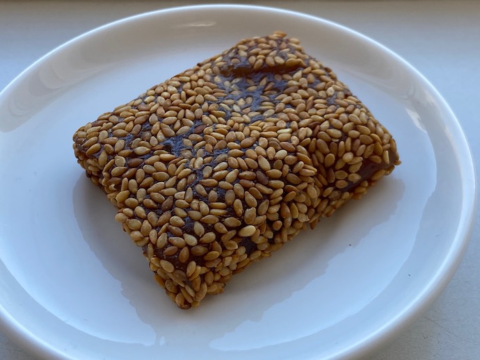 もうひとつのゆべしは、ごまがまぶしたものだった。ゆべしとしては珍しいと思う。そもそも、ゆべし自体は全国であれこれバリエーションというか、拡散した広がりがあるようで、また菓子店により様々な中身、外見の変化もあるようだ。あくまで記憶モードだが。