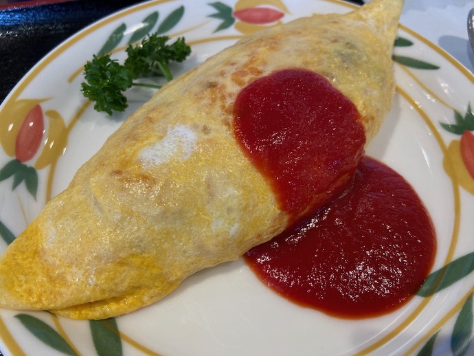 昼でこの混雑ぶりだとすると、夜は予約なしでは入れないのかもしれない。街を歩く人を見ても、2ー3割は外国人観光客みたいだし、ひょっとするとこの「オムライス」が世界的に有名になるのかもしれない。今のうちに食べておかないと、この先は1時間待ちの行列が……………と心配するような事態になるかも。でも、それは嫌だなあ。