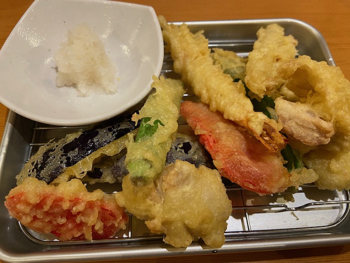 元来、てんぷらとはうす衣もではないかと思っているので、熱々の天ぷらを衣がふやける前にさっくりと食べるのが良い。