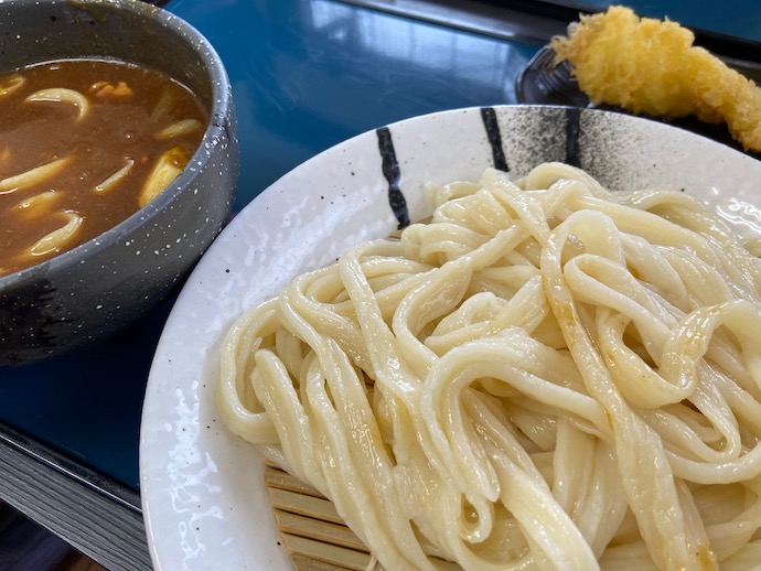 じゃがいも料理とはまるで異なり、武蔵野うどんは今でも現役バリバリのローカルフードだ。つゆに入ったかけうどん的な物ではなく、もつけ汁で食べるスタイルが原型だが、そこからかなり派生的に「つけ汁のバリエーション変化」が生まれた。おそらく最初の頃は、出汁の効いた醤油味だったのだろう。それに、肉やらキノコやらの豪華な具沢山のつゆが加わったはずだ。つゆ革新運動?の流れにあわせて、カレー味は生まれた。蕎麦屋のカレー南蛮の直系子孫というか、丸パクリでしかないとは思うが。