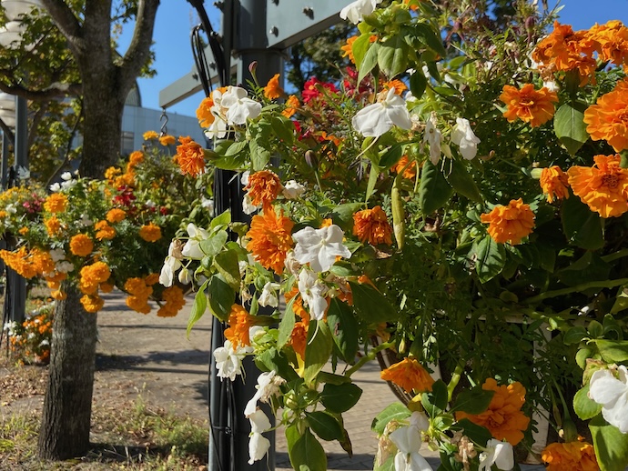 駅の入り口から図書館に向かうまでの道が、この時期にもかかわらず花で飾られていた。人口5万人程度の地方小都市なのだが、文化レベルは高いのがわかる。(初めて知ったかも)