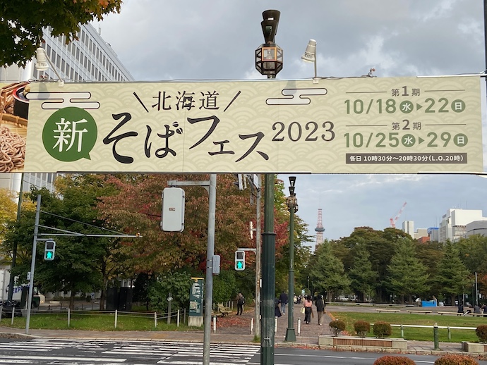 大通公園でのイベント、そばフェスは今年が初めての開催とのことだ。北海道は日本有数のそば産地だが、国産蕎麦はなかなかお値段が高いので、国産蕎麦粉を使った蕎麦はもはや高級品だ。北海道産蕎麦粉など滅多にお目にかかれるものではない。それをイベントでやってしまおうというのは、なかなかの心意気ではないか。