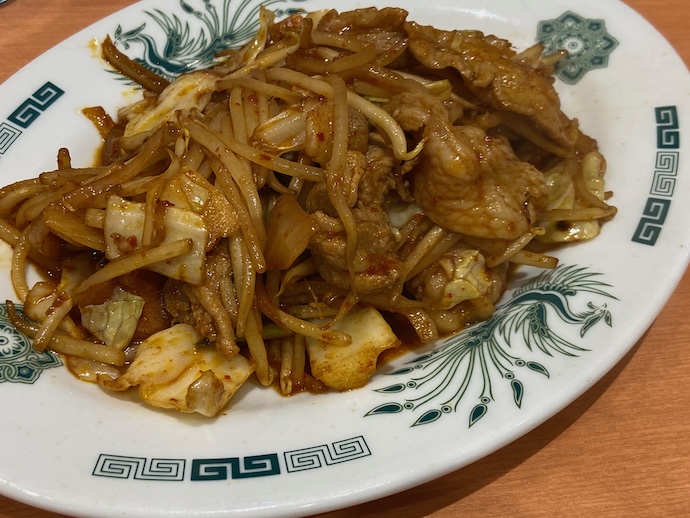 今回は、まず赤くない。おまけにキムチ味は薄めで辛味も控えめ。そして、肉の量が通常の倍くらい入っているような感じがした。肉野菜炒めの、肉増量バージョンといった感じだろう。今まで食べた中でも、一番の変わり者だった。
