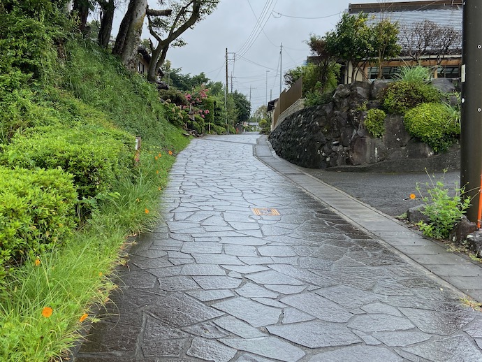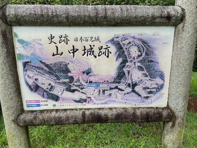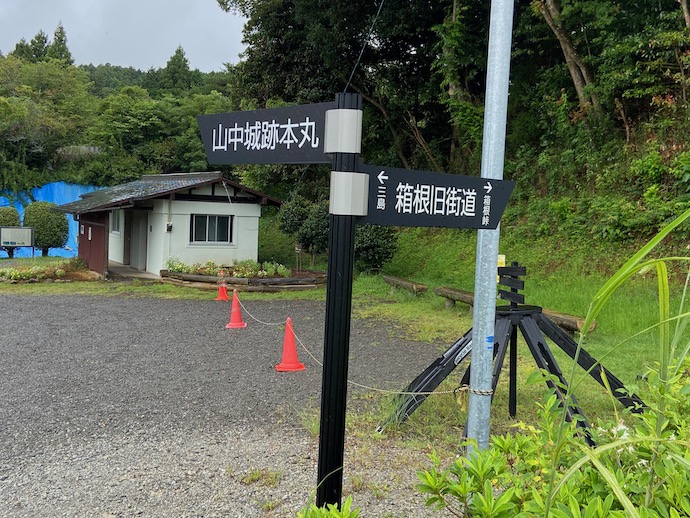城の脇を箱根峠越えの旧道が通っていた。石畳の道は当時からあったのだろか。おそらく江戸期の普請だと思う。ただ道路表面の滑らかさを見る限り、実物ではなく復旧したもののようだ。歩いてみるとなかなか急勾配の坂道で、今では道沿いに民家が立ち並んでいる。城が攻め落とされた後に住み着くようになったのだろうか。