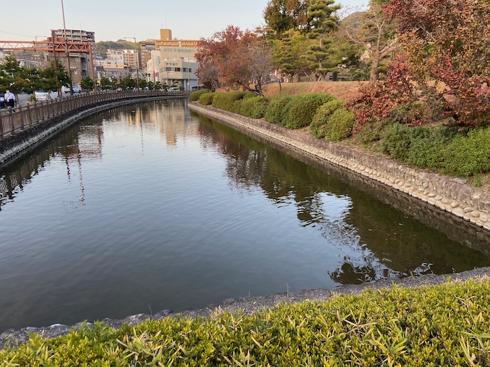 大山祇神社、弾丸ツアーのため前泊した松山で、夕方に時間が空いたので松山の大名物「松山城」ではなく、より由緒正しき古城を見に行った。鎌倉時代から戦国時代まで伊予(愛媛)の領主となっていた河野氏の城跡だ。平地に造られ堀と土塁で守られた堅城だった。