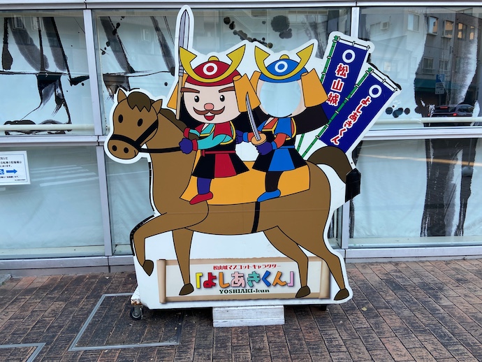 松山城を見るときのベストアングルはここかなと思った場所がお茶屋になっていた。朝早い時間だったのでちょっと肌寒い感じはあるが、せっかくのお茶屋から観光しているので、ここは一念発起して食べるべきものがある。