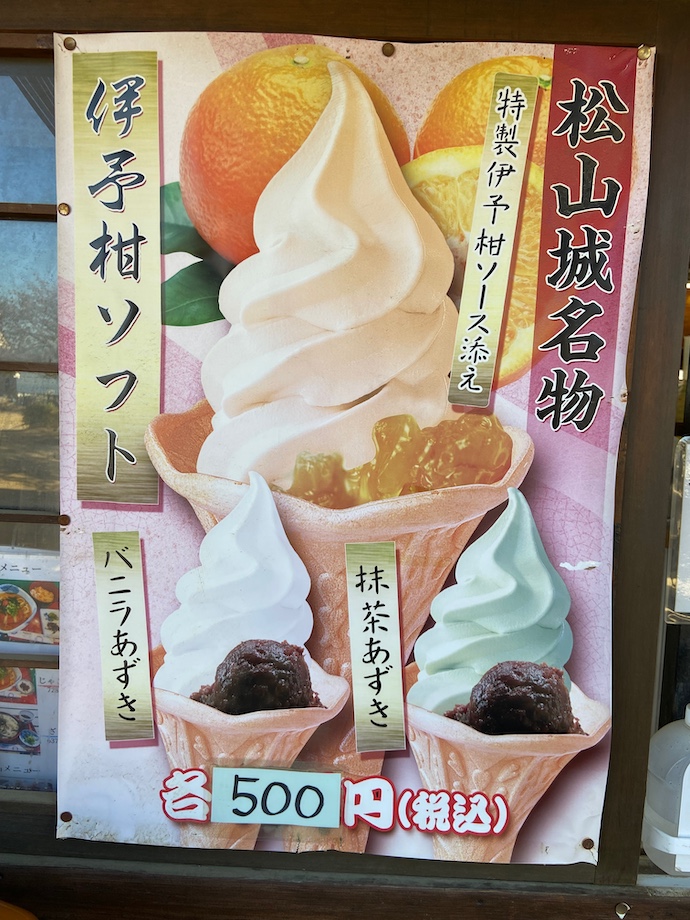ちなみに伊予柑ソースをつけて食べると、とてもうまい。ソフトクリームではなくフローズンヨーグルトにすると夏向き商品になりそうだ。抹茶あずきも美味そうだが、これを松山で食べる理由が難しい。静岡とか京都であればお茶の産地として成立しそうだが。ソフト道の奥は深いぞ、と気を引き締めることにした。