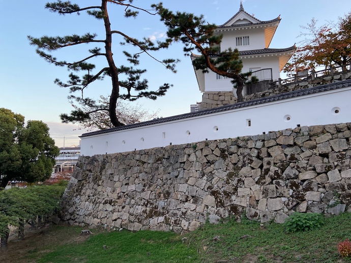 福山城に着いたのは夕刻だった。城が夕日にさらされる頃で、自然のライトアップとでも言いたいくらいに夕日に染まる城壁は美しい。ちょっと感動してしまった。