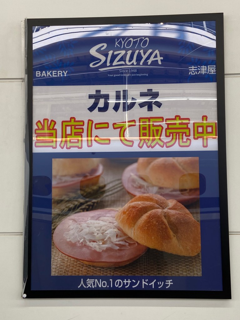 帰りの新幹線の待ち時間に、構内の土産物を見て回っていたら現物を発見したのでとりあえず買ってみた。京都のパン屋が作っているらしいのだが、カルネとは一体どういう意味なのかはわからない。仕方がないのでホームページで確かめてみたら、色々と詳しく書かれていた。名前はフランス語、商品の原型はドイツで見たもの、それをアレンジして今では「京都市民の国民食」らしい。