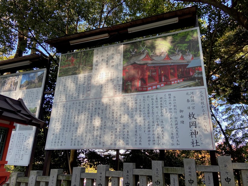 神社の入り口にある「縁起」を読むと、古代ヤマト朝が統一事業に取り掛かり、いくつかの大王の治世を経て奈良盆地に王都を打ち立てた時代の先駆けがこの神社であるようだ。やはり古き神社だけに謂れがある。