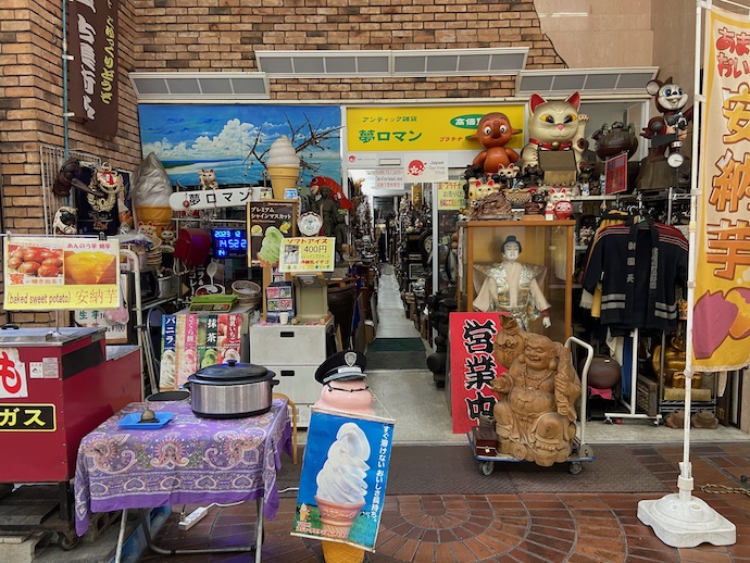 そのラジオ店の先で、これまた不思議な店を発見した。何を売っているのかよくわからない。店頭で飲食業をしているような感じもするが、入り口付近には様々な人形が並んでいる。どうやら骨董品屋というかアンティックショップというか、いろいろな古いものを雑然と並べて売っているようだ。