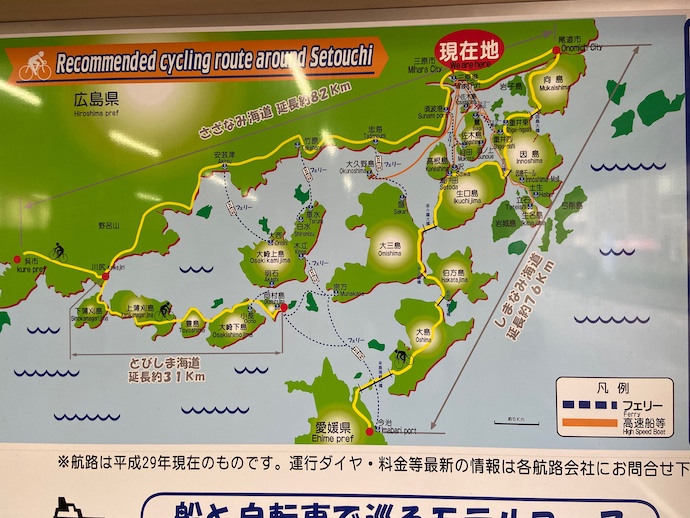 よくよく地図を見ると、ウサギで有名な島があったり、レモンで有名な島があったりするが、どの島へも船で渡るしかない。レモンの島に入ってみたいものだが。