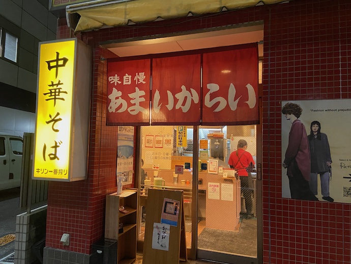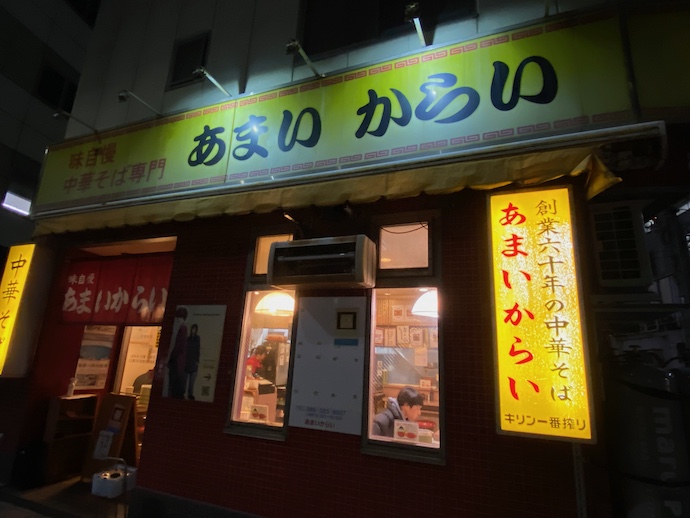 岡山駅から少し離れたところにこの店はある。繁華街を歩くついでという場所ではなく、この店にわざわざ行く、そんな立地にある店だった。看板を見ただけでは何の店なのかよくわからない店名「あまいからい」に夜飯を食べに行った。昼間は行列ができる人気店らしいのだが、流石に夜もふけるとそれなりに空いている。