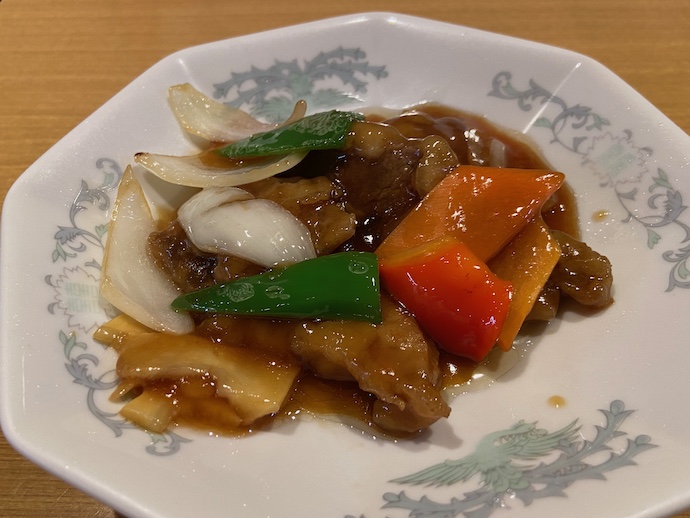 いつもの酢豚とビールを頼んだら、ちょい飲みセットにするとお得だと言われて、言われるままにそれを注文した。酢豚を食べているうちに、餃子が追加で出てきた。なんだこれは?と思ったが、お得なセットとはこのハーフ餃子がついているということだった。なるほど、と納得したが。この餃子3個というのが微妙な量で、ありがたいような有り難くないような……………