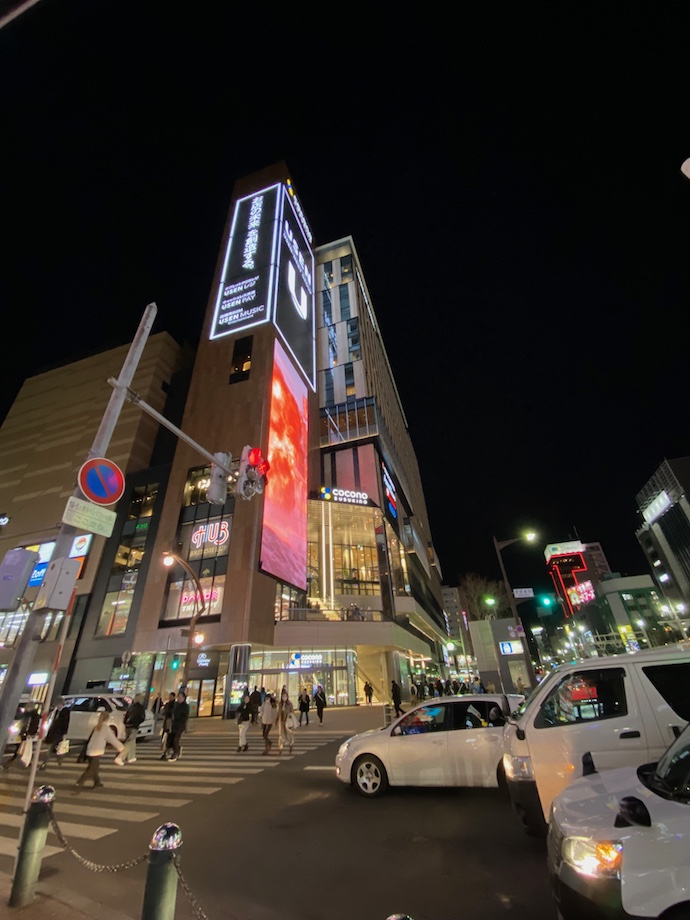 ススキノの目立つ場所に開いた商業ビルは、夜ではなく昼でも遊べるススキのシンボルになるらしい。上層階にはシネコンも入っているので、一時期ススキノから姿を消した映画館が戻ってきた。札幌は人口の割に映画館が少ないので、これはありがたいことだろう。