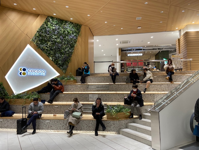 その商業ビルの地下になんとも言い難い空間が生まれていた。何やらローマにある某観光地のように、階段状の席に座っている人が大勢いるが。これは米国西海岸発のシアトル系珈琲店の客らしい。