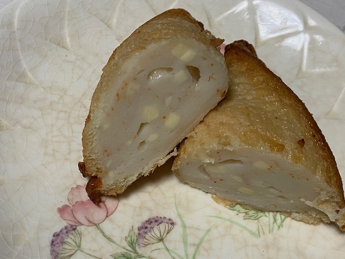 その製品の大半はオーソドックスな「すり身揚げ」なのだが、一部に特異な進化を遂げたものがある。魚のすり身製品に詳しいわけではないので、似たようなものが全国のどこかにあるのかもしれないが、個人的には類似品の記憶がない。