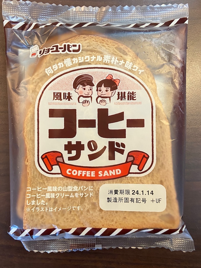 九州を代表する製パンメーカー、リョーユーパンで見つけたコーヒーサンドは、青森のローカルパン代表「イギリストースト」に酷似している。どちらが元になっているかという疑問も浮かぶが、おそらく同時並行に生まれたものではないか。