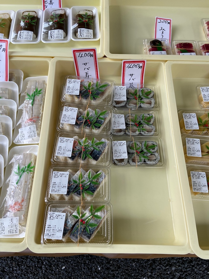 田舎寿司ミックスセットは他のお店で入手すれば良いと考え、さば巻を買い込み日曜市ツアーを続けた。