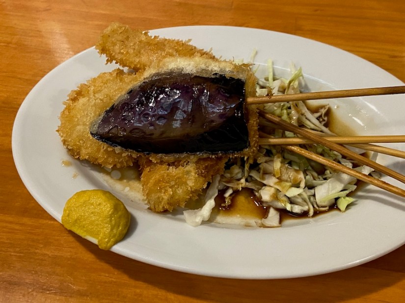 まずは串揚げ盛り合わせだ。5本セットでソース味。大阪の串揚げに似た気配はある。高知は、というか四国全体が京都・大阪から地理的に近いためか、料理を含めて広い意味で関西文化圏に入っているようだ。