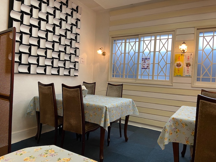 店内に入ると、ちょっとした高級感がある落ち着いた雰囲気のレストランだった。老舗の洋食店でよく感じる品の良いおもてなし感というか、ハレの日感だ。家族の大事なイベントのたびに通ってくる定番のお店、とでもいえばいいだろうか。クロスのかかったテーブルが非日常感を演出する。最近のファミレスは下駄履きで行けそうなお気楽食堂だが、こういう店はスーツで来なければいけないと思ってしまう。凛とした佇まいを感じてしまうのは、昭和生まれのノスタルジーみたいなものかもしれない。ホテルのレストランとはまた違う。背筋を伸ばしてご飯を食べようみたいな感覚がある。