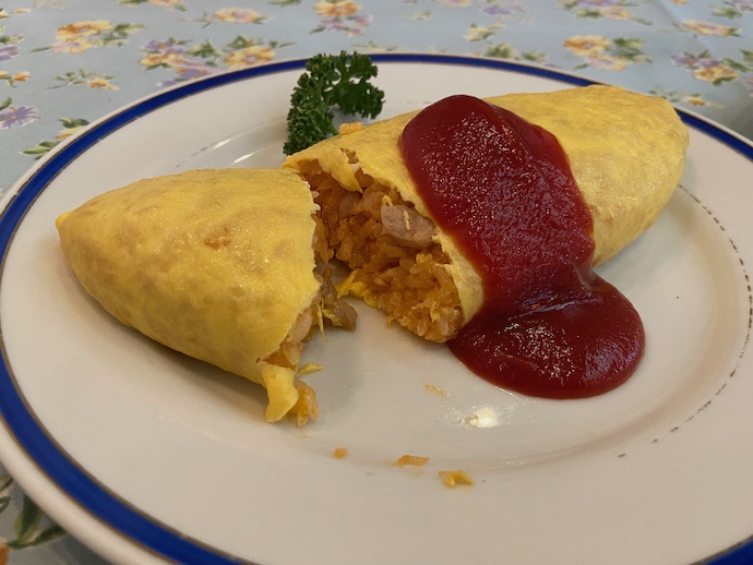 しかし、この一品は本当にフォトジェニックな美しさだ。オムライスとして理想的なフォルムというべきか。卵焼きも焦げひとつない、完璧なルックスを保っている。