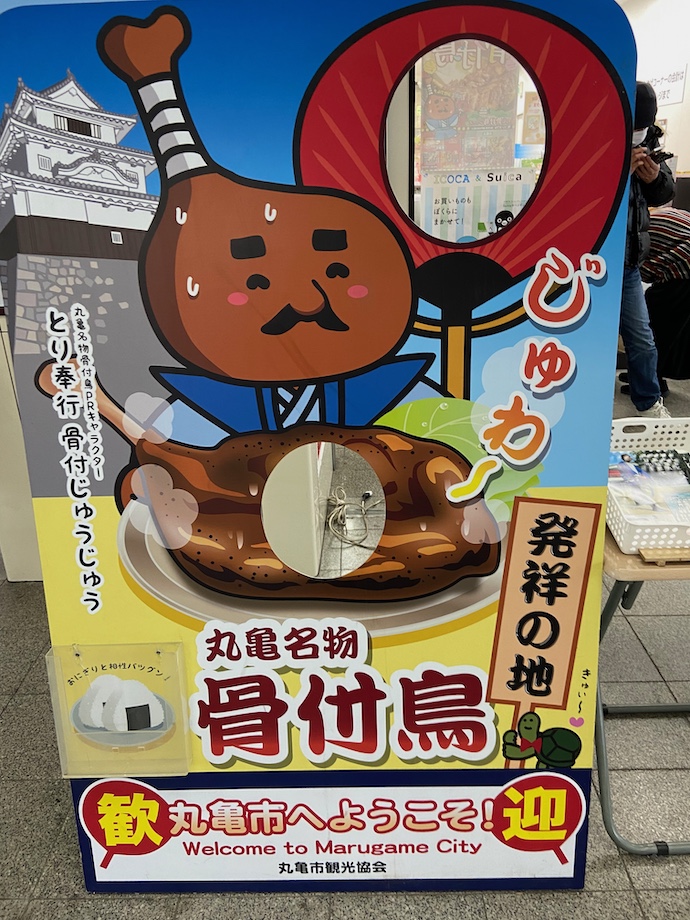 JRの駅にご当地キャラがいたのだが、なんと著名な「丸亀城」ではなく「骨付鳥」様がご就任されているではないか。例えてみれば、浜松で徳川家康を押し退けて鰻がご当地キャラになっているようなものだ。あちこちでご当地キャラを見てきたが、これはすごいことだろう。くまもん対からしれんこん、みたいなことで、「くまもん」が負けているということだよなあと、感心してしまった。