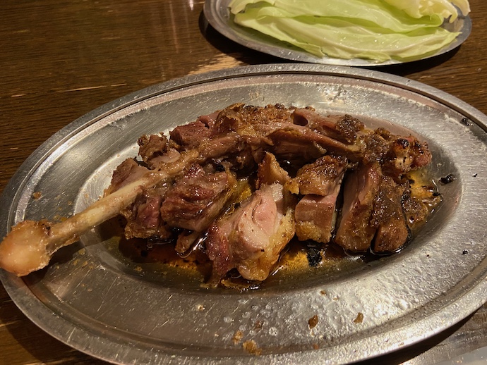 そして大本命の「おやどり」が到着した。この親鳥特有の固さが好みなのだ。骨を手に取り、直接ガブリと頬張れば、塩と胡椒とニンニクが一体になり口の中で爆発する。散々いろいろな鳥料理を食べてきたが、やはりこれが筆頭というか鳥料理界のキングだろうと思う。世紀末世界で言えばラ◯ウ級の存在だ。そして鳥料理界に北斗の伝承者は存在しないのだなあ。超然と君臨する単独峰のようなものだ。