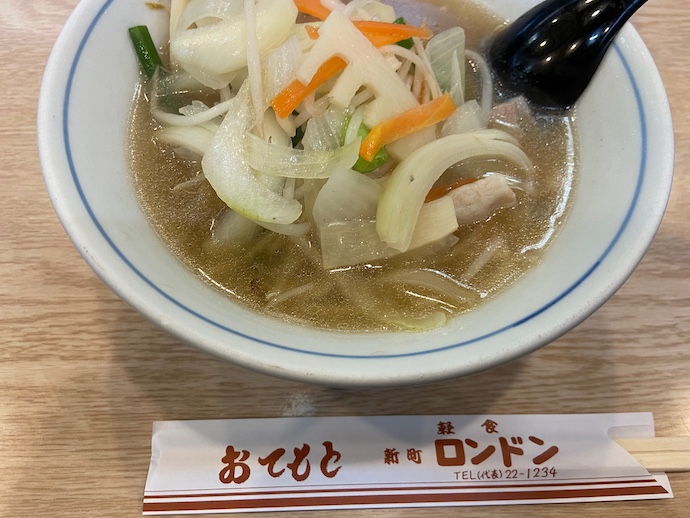 スープはあっさりで塩ラーメン的な味わいだった。野菜がたっぷりと乗っている。麺も細めな感じがよい。長崎ちゃんぽんとは全く別系統のようだが、長崎で発祥したちゃんぽんが九州島を横断して四国に渡ったという物らしい