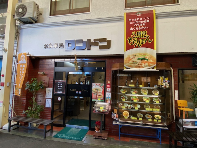 この八幡浜は、街全体がちゃんぽん推しをしている「ちゃんぽんシティー」だった。そのちゃんぽんマップの中にある一店を選んで実食することにした。屋根のかかったアーケード商店街の中にある食堂だった。店名を見るとお食事処とある。これは、期待できそうだ。今や、風前の灯となっているマチ中の大衆食堂ではないか。