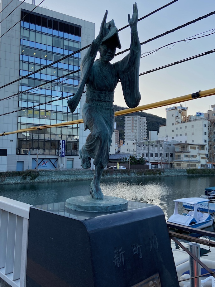川を渡り観光名所である眉山の麓まで歩くと、この街を代表する繁華街がある。それなりに賑やかだし人通りも多い。面白いのは夕方から夜にかけて人が集まってくるのだが、かなりの人が駅前から歩いてくることだ。とりあえず現地集合するには徒歩移動らしい。