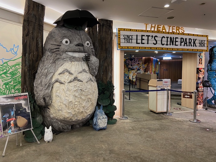 最終日に出かけた見たら、そこにはご当地狭山丘陵の主人「巨大猫型ばけもの?」がお出迎えしてくれた。やはり、メイとさつきを見送ったように、この映画館の最後を見送ってくれるということなのか。