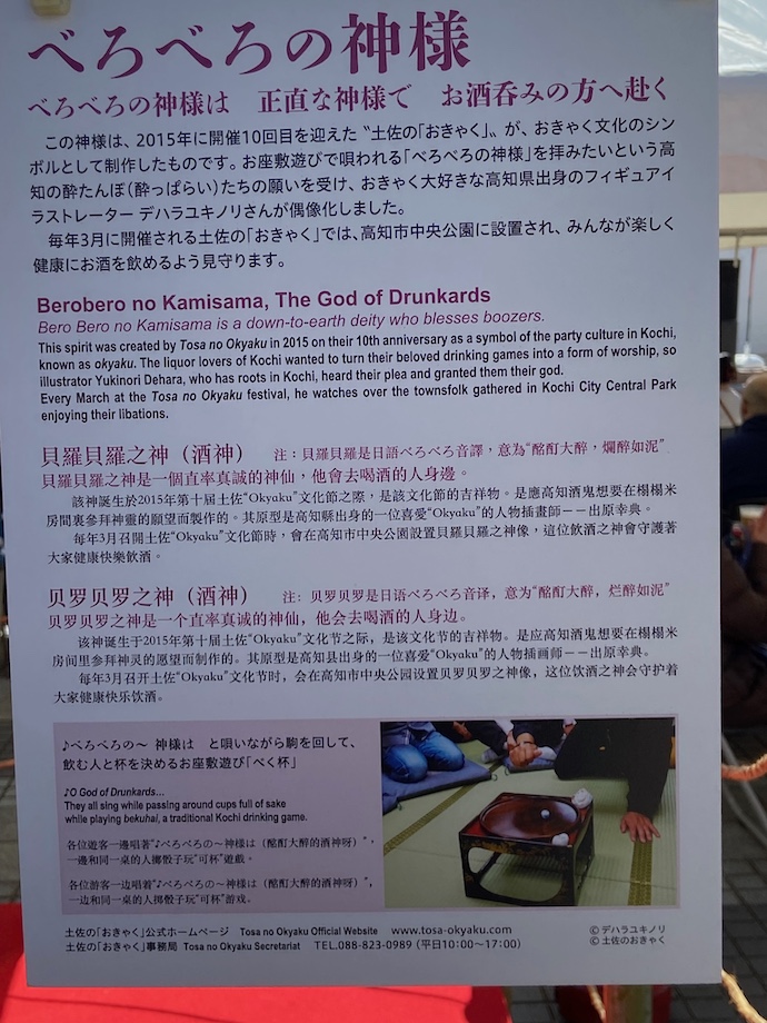 ありがたい酒神の縁起についてきっちりと説明があった。ちなみに、この会場内には「べろべろの神様」のおみくじを引ける場所が設置されている。そこで、おみくじを引くと(購入すると)、これまたありがたいお神酒ががいただけるのだが、そのお神酒が例の下半身のコブから出てくる。これはちょっと誤解を招くというか、お下品なとSNSで叩かれそうな怪しさだ。まあ、酒の神様だからね。あまり細かいことは気にせずに。